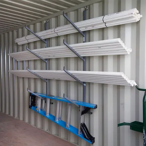 Store piping and other long materials off the floor and out of the way. Each bracket has a load capacity of 1100 pounds and each bracket is rated for up to 550 pounds.
